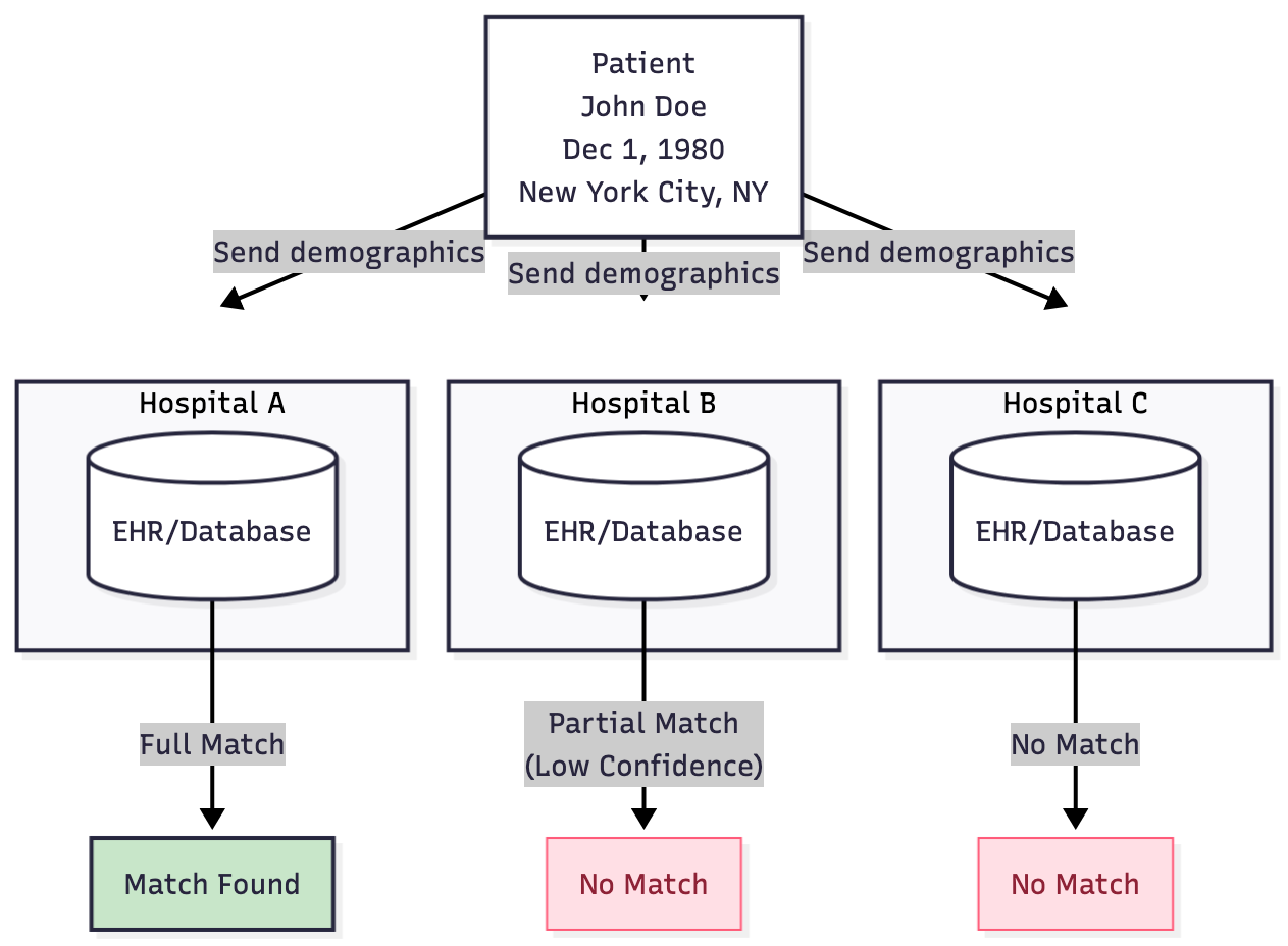 Before we get into how TEFCA IAS handles identity and record discovery, it’s worth revisiting how patient matching works in healthcare today, and why the U.S. still struggles with something as basic as knowing which “John Doe” a healthcare provider is actually treating.